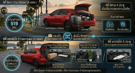 ระหว่าง City Sedan (4 ประตู) และ City Hatchback (5 ประตู)