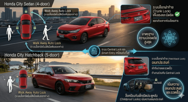 เมื่อพูดถึง Honda City (ซีดาน 4 ประตู) และ City Hatchback (5 ประตู)