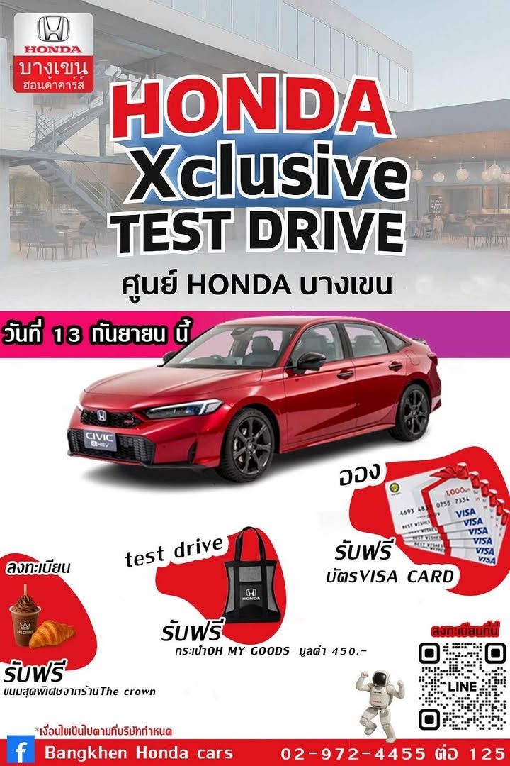 ในวันเสาร์และอาทิตย์ที่ 20-21 กันยายน 2568 เวลา 9.00-16.00 น. ที่ บางเขนฮอนด้าคาร์ส์ พร้อมของแจกและสิทธิพิเศษมากมาย