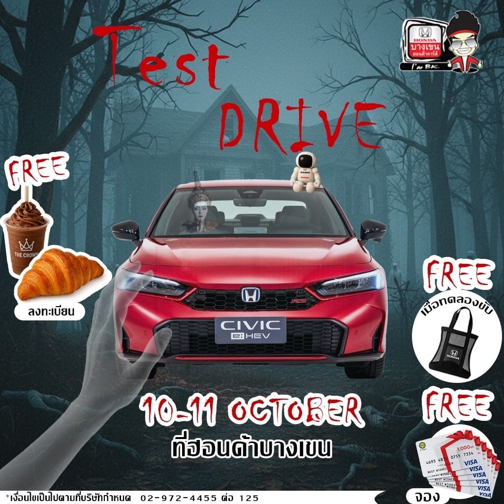 วันศุกร์และเสาร์ที่ 10-11 ตุลาคม 2568 เวลา 9.00-16.00 น. ที่ บางเขนฮอนด้าคาร์ส์ พร้อมของแจกและสิทธิพิเศษมากมาย